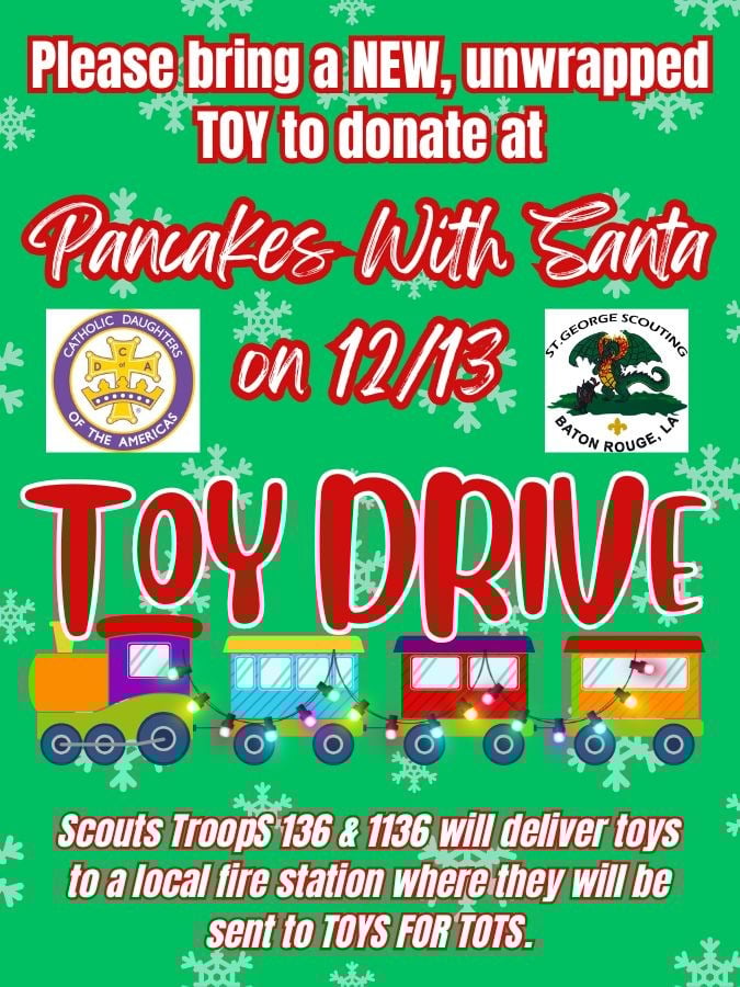*Please bring a new, unwrapped toy for the Boys Scouts Toy Drive. All families are welcome to participate, Toys will be delivered to the St. George Fire Department and donations will go to Toys for Tots.